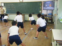 そんな中、1・2・3年生が運動会に向けての練習を運動場ではなく、教室で行っていました。