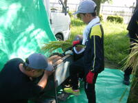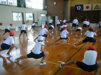 どちらも動きの確認が中心ということで、体育館で行いました。気温29℃以上、湿度90%以上という状態でしたので、体育館内の窓や出入り口を開け、扇風機5台をフル回転させ、水分補給のための休憩をこまめに取りながらの練習でした。