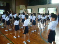 今日は、上学年(4・5・6年生)と下学年(1・2・3年生)の表現の練習を行いました。