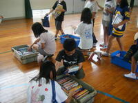それは串間市立図書館の方々がセレクトした本を、学校の体育館に運び込んで貸し出してくださる日のことです。月に1度のこの日を、子どもたちはとても楽しみにしています。