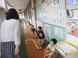 児童は、「学校での新しい生活様式」を意識しながら、間隔を空けて静かに整列して検診を受けることができました。