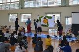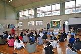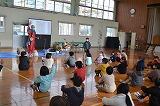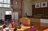 福岡から「給食番長」などの作品で有名な絵本作家の「よしなが こうたく」先生をお招きして実施することができました。今回は、体育館での3密を避けるために、上学年と下学年の2つに分けて実施しました。