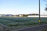 運動場も周囲の田畑も霜で一面が白くなっていました。こうした寒さの中、北方小の児童は朝から元気いっぱいで登校してきてくれました。
