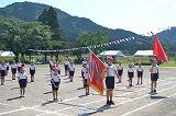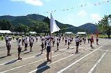 雲ひとつない素晴らしい晴天のもと、全校児童がこれまでの練習の成果を十分に発揮してくれました。昨年度同様に新型コロナウイルス感染症の影響で、内容を精選したり、参観者を限定したりといった制限をしつつ、午前中のみの開催でしたが、保護者の皆様をはじめ大勢の方が児童に声援を送ってくださいました。その声援にこたえるように、児童一人一人が輝くことができた運動会でした。赤団、白団ともに団長さんを中心によくまとまって応援なども工夫していました。