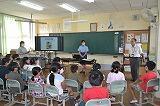 串間中学校から栄養教諭の先生に来校していただき、「なんでも食べる」ことをテーマに色々な食べ物には自分たちが成長していくために必要な栄養がたくさん含まれていることを理解し、好き嫌いなく食事をすることの大切さについて学習しました。