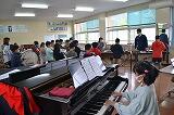 合奏曲は、「銀河鉄道999」(懐かしいゴダイゴの楽曲)です。児童全員が自分の担当する楽器の演奏を一生懸命に頑張っています。昼休みなども自主的に練習している様子が毎日見られます。最近では、体育館での練習も仕上げの段階となり、全体的な速さや調和など細かな部分の確認なども行いながら日々上手になっています。