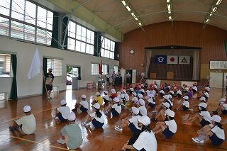 続いて、健康委員会の進行で、団長による赤白の色決めが行われ、赤団、白団が決まりました。