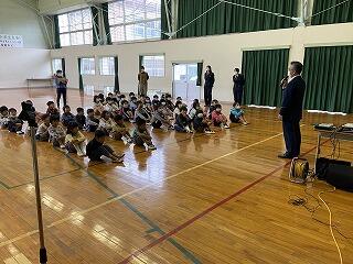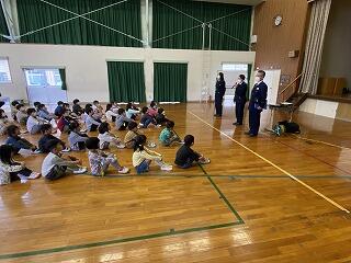4月25日(火)2校時下学年、3校時状学年の交通安全教室が行われました。あいにくの雨で外での活動はできませんが、交通安全協会指導員の方々の話をしっかり聞き、いのちを守る学習に取り組みました。