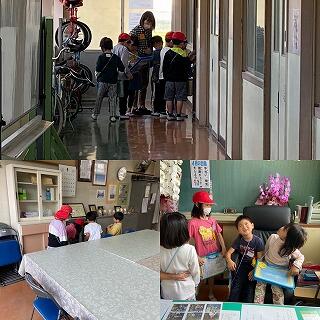 今日は、2年生が1年生を案内して学校探検を行いました。入学して初めて入る教室もあり、1年生の子供たちはとても興味津々の探検でした。