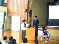 新任式では、1名の職員を紹介したあと、歓迎のあいさつを6年生がしました。