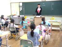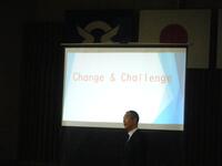 始業式では、校長が今年度のスローガンである「Change & Challenge」について話をしました。そのあと、児童代表で6年生が作文を発表しました。