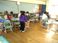 式が終わり体育館を後にした子どもたちは、新しい担任と対面し、新しい教室への荷物移動と清掃を行いました。その後、新しい出会いを楽しむかのように、笑顔を見せながら話を聞いたり、新しい教科書を見たりしていました。