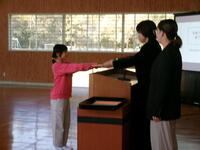最後に5・6年生が発表しました。総合的な学習の時間に、金谷の歴史について調べたことをきっかけに、どうすれば人口が減ってきている串間市をアピールすることができるか考えたようです。そして、串間市を訪れる人が、歴史にふれながらウォーキングをするとよいのではないかと考え、いくつかの歴史散歩コースを提案しました。見ている人たちが興味をもつ発表内容となっており、すばらしい発表でした。