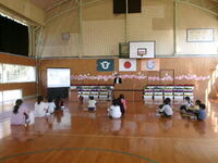 体育館で全学年が集まって、これまで勉強してきたことを発表しました。おうちの方々だけでなく、学校関係者評価委員の皆さんや保育園の先生方も来てくださいました。