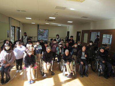 その後、交流会をしました。ソーラン節を踊ったり、手話を使って「ありがとの花」を歌ったりしました。利用されている皆さんとじゃんけんしたり自己紹介をしあったりもしました。とても楽しく過ごすことができました。