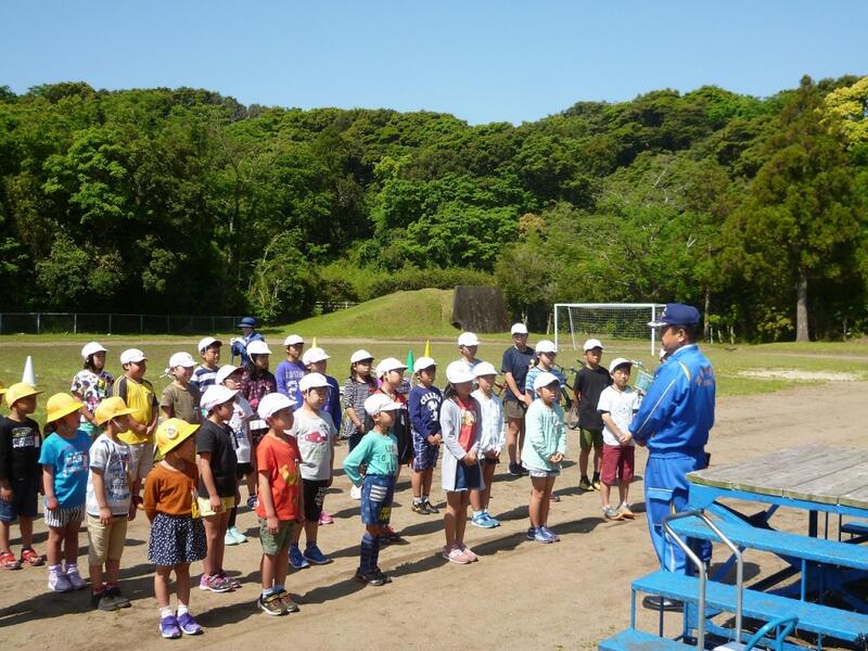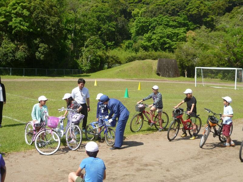 4月20日3校時に、交通安全教室が行われました。串間警察署と交通安全協会にご指導をお願いし、1.2年生は横断歩道の渡り方、3~6年生は自転車の点検の仕方と正しい乗り方を中心に学びました。