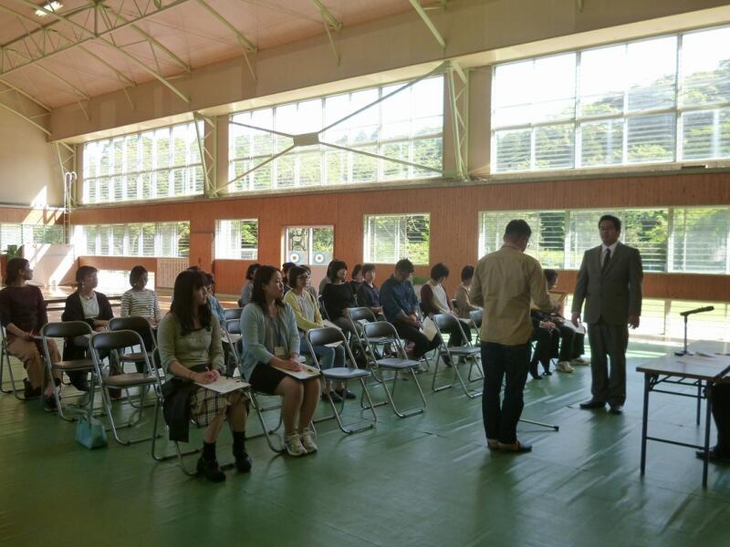 金谷小学校は、毎週水曜日が外国語活動の日になります。4月11日の第1回目のみ、自己紹介を兼ねて合同で行いましたが、18日の2回目からは別々の部屋で行います。