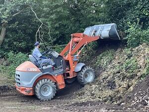 サッカーゴールの撤去作業では重機が活躍してくれました。