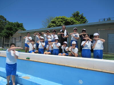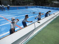 前もってPTAによるプールそうじを行っていたので、今日はプールサイドやプール内の横部分をきれいにしました。