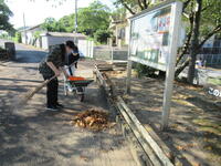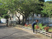 毎朝、先生たちが校門周辺を掃除したり、水やりしたりしています。