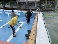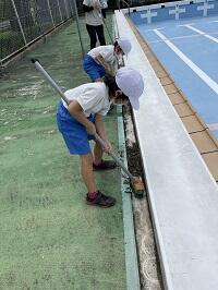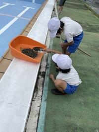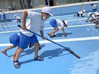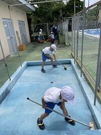 低学年の子供たちは、プールの周りをきれいにしてくれました。