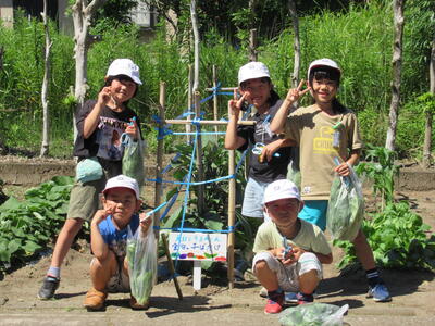 1・2年生が以前から育てている畑に名前がつきました。こどもたちが考えた名前は、『えいようまんてん 金谷っ子ばたけ』です!
