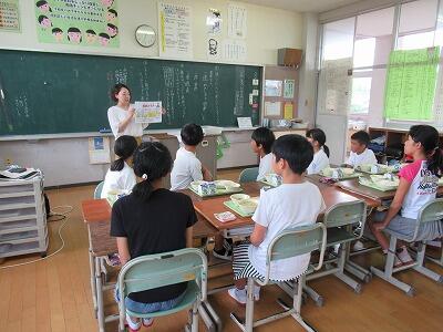 給食主任が曜日毎に各教室を回り、食事のマナーや食に関する指導を行います。