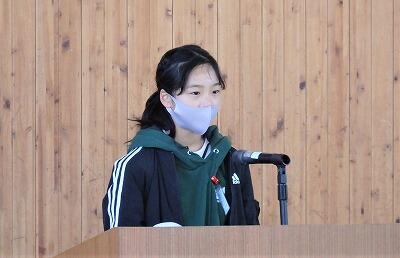 1月15日、体育館で、6年生の代表児童が、意見発表を行いました。