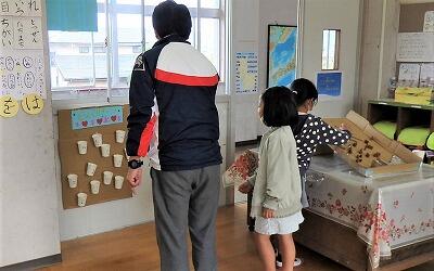 1年生は、自分たちが考えたお祭りコーナーの説明をしました。