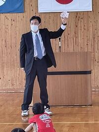 新しい校長先生をお迎えしました。歓迎のことばが、新6年生にとって初めての仕事でしたが大役を立派に努めることができました。