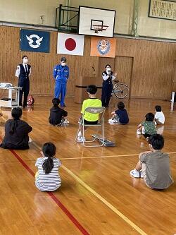 4月26日(火)に交通教室がありました。今回は悪天候が予想されたため、体育館での交通教室となりました。