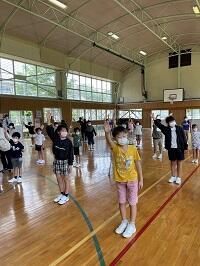 12日の入学式以来、久しぶりに全校児童が集合しました。