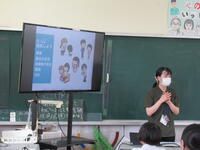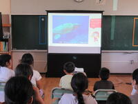 串間市市木の海岸でウミガメの保護活動をされている田代さんが、実際に卵を保護して、子ガメを海にかえす活動をしていることを聞いて、子ども達はびっくりしている様子でした。お話を聞いて、命の大切さを実感することができました。