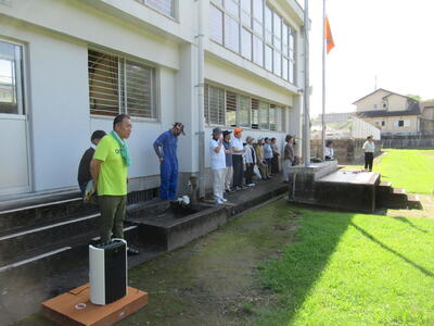 式の後は、夏休みの過ごし方について、生徒指導の吉元先生と保健室の清本先生のお話がありました。一つしかない命を大切にするためのお話を聞きました。子ども達は、暑い中でしたが一生懸命聞くことができました。