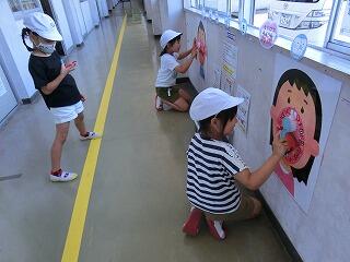 「歯と口の健康週間」にあわせて作られた掲示物で遊んで