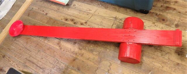 先ほどの丸太に、板がのせられていますね…。よく見るとバランスが…。