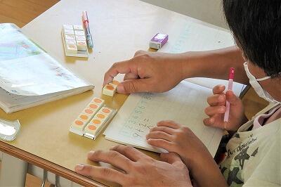 1年生が、文字を書いています。