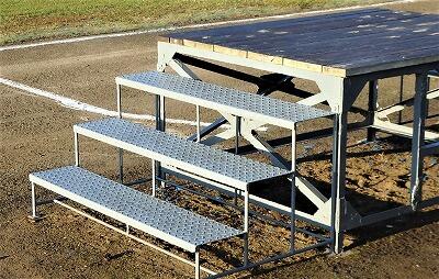 運動場の朝礼台の階段を塗り替えたり、台の上をきれいに磨いたり!!