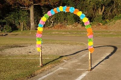 運動場には、用務員さんが作成した「アーチ」が出されています。