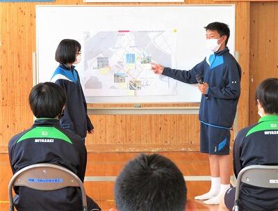 1年生は、自分たちが考えたお祭りコーナーの説明をしました。