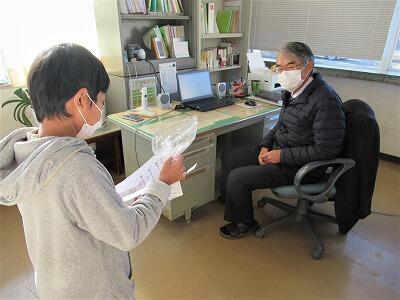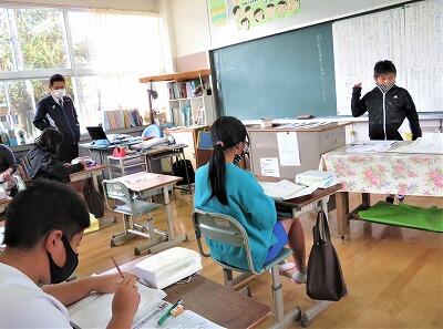 5年生男子二人も、先生に見守られながら何やら書き込んでいます…。
