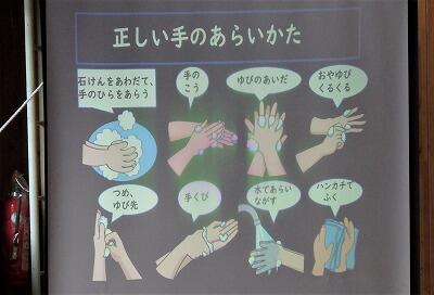 正しい手の洗い方を視覚的に分かるように提示しました。