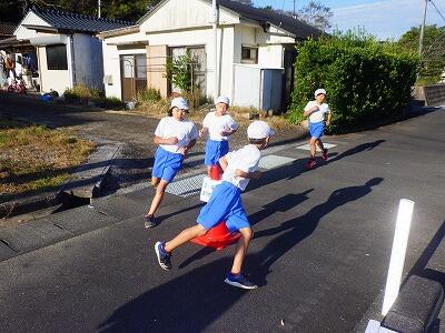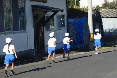 1・2年生です。運動場を1周して、道路を走り、また、1周しました。