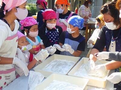 前もって、用務員さんが杵をきれいに磨いてくたおかげで、うまくつけました。