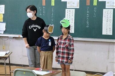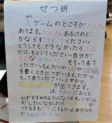 1年生は、自分たちが考えたお祭りコーナーの説明をしました。