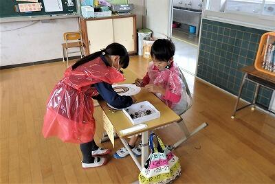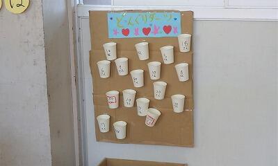 教室には、「どんぐりダーツ」コーナーがありますね。