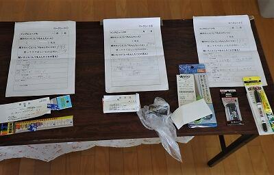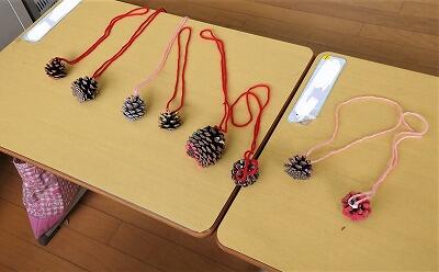 こちらは、手作りの「けんだま」コーナーです。来てくれるか心配そうです…。