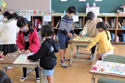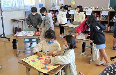 1年生と2年生が、楽しそうに「すごろく」で交流していました。