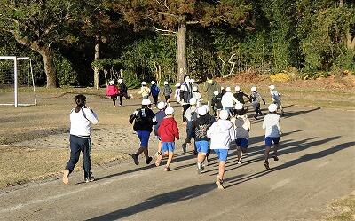 ラストは、運動場をジョギングです。金谷っ子は、寒さに負けません!!