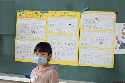 2年生の児童は、「授業中の発表をたくさんすること」という新年の目標を
